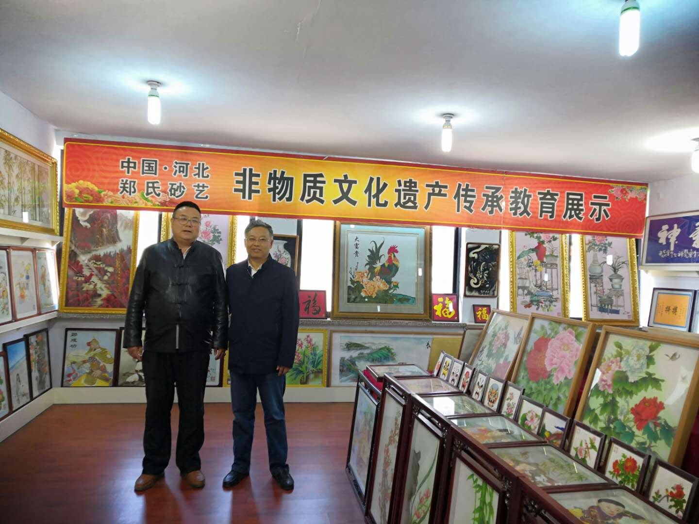 2019年5月6日,縣政協(xié)辦公室主任馬建軍來到鄭氏砂藝調(diào)研考察。馬主任在鄭總的陪同下考察了砂畫制作車間、書畫裝裱車間、榮譽(yù)展覽室并參觀了鄭氏砂藝非遺文化傳承教育展廳。