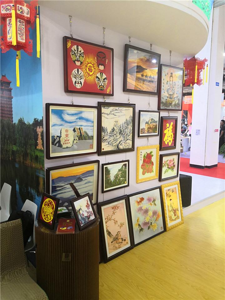 2019年第十四屆中國北京國際文化創意產業博覽會(以下簡稱“文博會”),于2019年5月29日至6月1日在北京舉辦,本屆文博會服務國家擴大開放戰略,著力搭建中外文化交流互鑒平臺,共有2個國際組織、68個國家與地區的86個境外代表團組參加活動;全國12個省區市代表團參展參會。河北展區以“文潤河北,冀望未來”為主題, 重點展示了河北優秀傳統文化和文化產業的發展成果,其中省非物質文化遺產鄭氏砂藝(畫)作為承德市唯一一家受邀參加此次會展的文化產業,提供參展作品50余幅,再次讓鄭氏砂畫傳統藝術走出河北、走向世界。我縣旅游和文化廣電局及博物館相關領導應邀一同參觀指導。