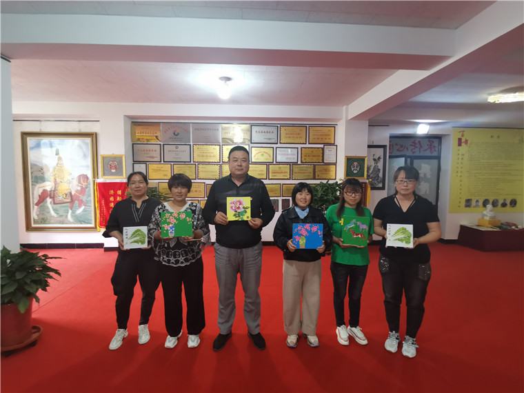 2020年5月20日,蘑菇峪鎮扶貧生產車間貧困人員張秀榮、張玉紅等人來公司考察學習,鄭鐵軍董事長帶領參觀了鄭氏砂藝非遺展廳,貧困人員張秀榮表示,這次參觀使自己對砂畫的認識和制作起到了很大的幫助,打破了對砂畫的原有認知,她決定繼續努力學習和練習砂畫制作技巧,提升自己的專業水平,爭取早日達到公司技師們那樣的水平。貧困人員此次前來還提交了扶貧作品107幅,此次回收作品較以往不同,尺寸有所加大,按扶貧就業合同規定,每幅價格為25元,這樣獲取的計件收益就是2675元,每人另外還有保底工資600元,獎金300元。
