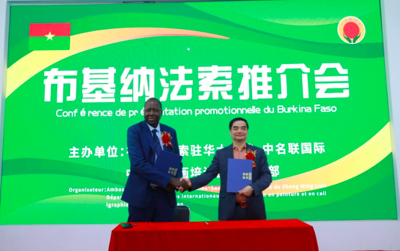 (中名聯國際圖片說明:布基納法索國家推介會上,中名聯集團與布基納法索駐華大使館正式簽屬了合作協議。)
