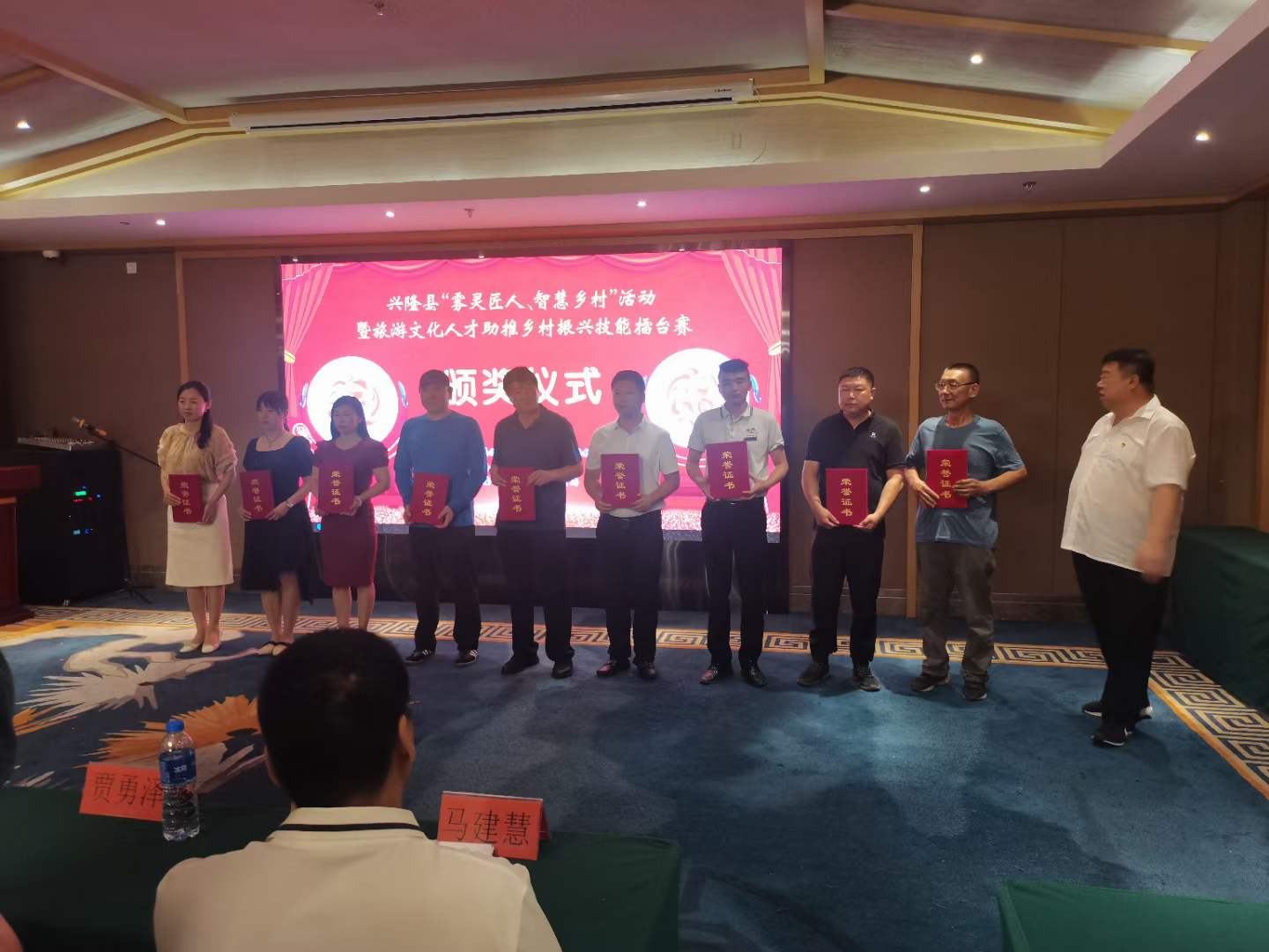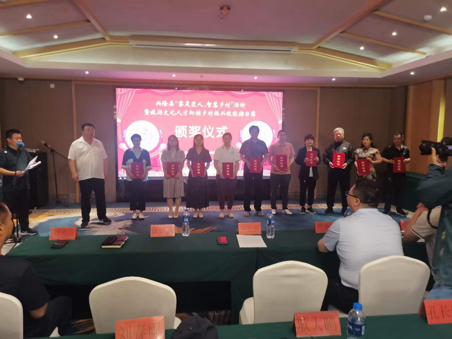 7月7日,興隆縣“霧靈匠人、智匯鄉(xiāng)村”活動暨旅游文化人才助推鄉(xiāng)村振興技能擂臺賽頒獎儀式在青松嶺鎮(zhèn)阿爾卡迪亞酒店盛大召開。興隆縣委常委、組織部長韓冰,縣人大常委會黨組副書記、總工會黨組書記、主席王立群,縣旅游和文化廣電局黨組書記、局長莊云飛,縣委組織部部務(wù)會成員、公務(wù)員局局長賈勇澤,縣總工會二級主任科員劉克友,旅游和文化廣電局副局長馬建慧等領(lǐng)導和獲獎藝術(shù)家們出席了頒獎儀式。