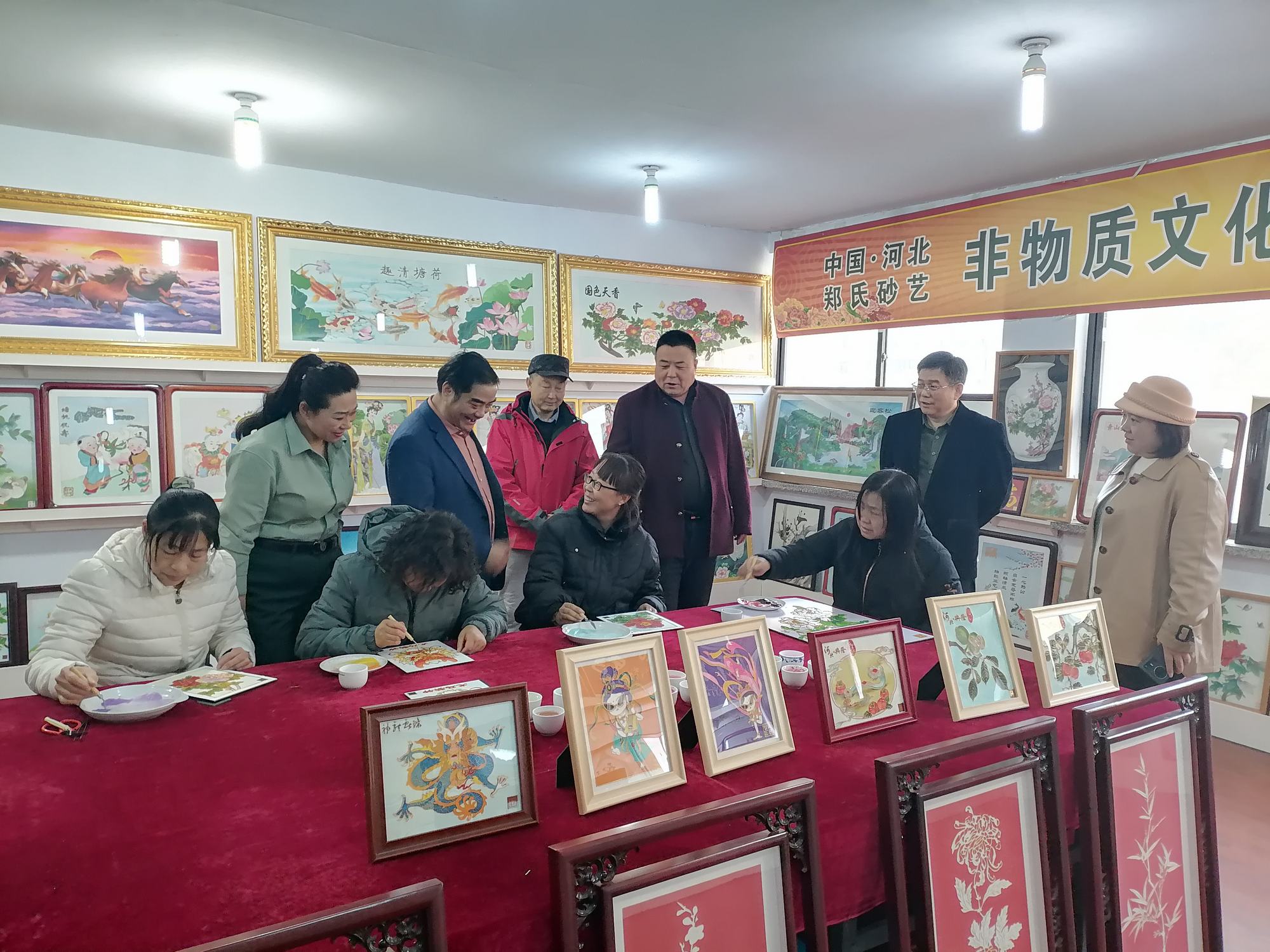 2024年3月12日至13日,中名聯國際戴本領總裁一行蒞臨興隆縣鄭氏砂藝文化有限公司,就鄭氏砂藝發展歷程、發展模式和發展規劃進行考察指導,一同前來的有原非遺司秘書趙萍,邯鄲市華冶工貿有限公司黨委書記、董事長、北京華納中創文化發展有限公司執行董事張書明,中國國務外事國賓禮特供藝術家、中國女畫家協會會員時愛華。興隆縣人大常委會黨組副書記、副主任高春青,興隆縣委宣傳部副部長、文明辦主任溫偉,清華大學文化與旅游產品設計研發中心原總監尹建民教授,鄭氏砂藝董事長鄭鐵軍等陪同參觀。