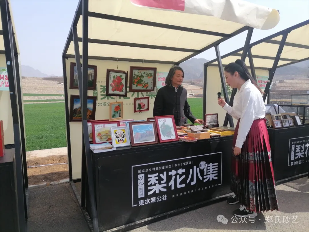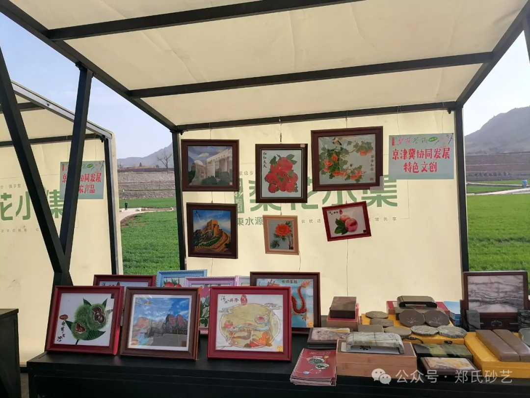 “忽如一夜春風來,千樹萬樹梨花開” 春風正好,花開有期。2024年4月8日上午,北京市平谷區(qū)鎮(zhèn)羅營鎮(zhèn)人民政府舉辦的以“千載梨花頌、花漾鎮(zhèn)羅營”為主題的梨花谷雨文化節(jié)活動拉開帷幕,為營造“傳統(tǒng)文化+梨花美景”的活動氛圍,鄭氏砂藝受邀參加了此次活動,并精心挑選了20余幅精品砂畫參加展出,展出作品涵蓋了紅火(山楂)、吉利(板栗)、平安(蘋果)、天文臺、興隆山風光等興隆地區(qū)眾多的特色產(chǎn)品和獨特景點,展出期間,鄭氏砂藝(畫)作品以其材質(zhì)的新穎獨特,制作手法的精妙絕倫,畫面內(nèi)容的豐富多彩,吸引了眾多游客駐足觀賞,成為了自媒體和游客的拍攝打卡地。鄭氏砂藝用自己的藝術(shù)方式充分地向北京人們展示了興隆的文化特色,同時為平谷“梨花節(jié)”增添了濃厚的文化氣息。