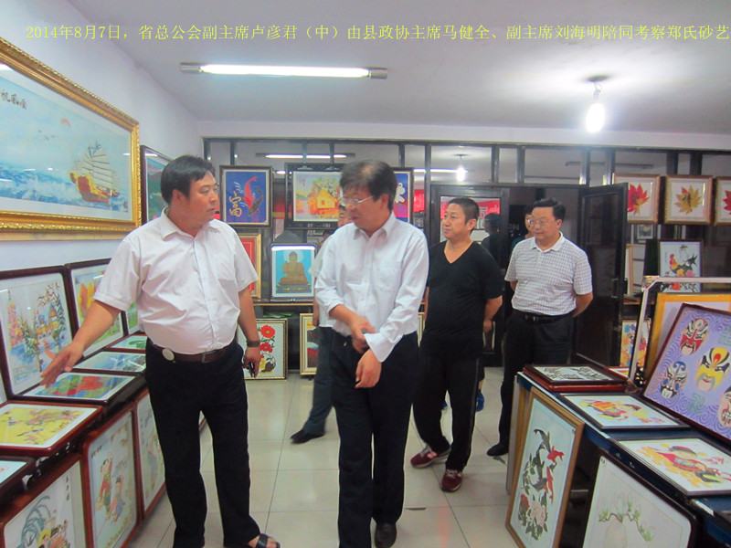 2014年8月7日,河北省總工會副主席盧彥君在縣總工會主席王立群、縣政協主席馬健全、副主席劉海明、秘書長劉立強的陪同下,來到鄭氏砂藝公司進行考察調研。