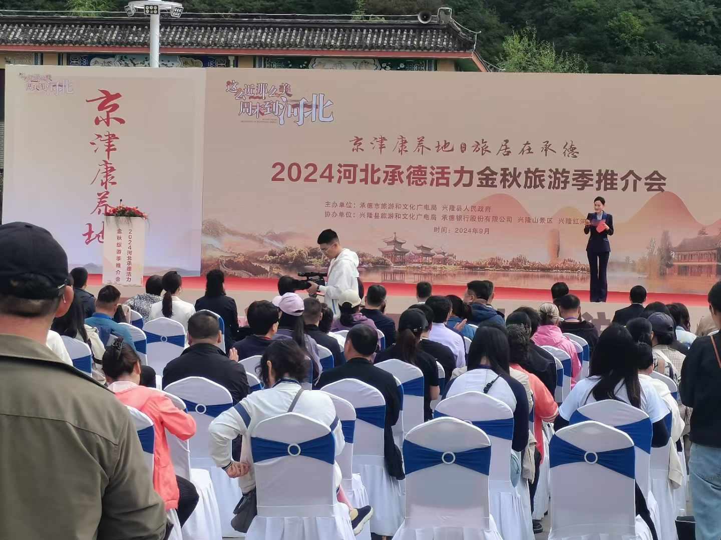 2024年9月25日上午,由承德市旅游和文化廣電局、興隆縣人民政府主辦的“京津康養(yǎng)地 旅居在承德”2024活力金秋旅游季推介活動,在興隆縣興隆山景區(qū)山門廣場隆重開幕,此次活動意在叫響承德秋季旅游品牌,推動承德市旅游業(yè)高質(zhì)量發(fā)展。活動邀請了京津冀遼蒙的大型旅行社代表,友鄰城市文旅部門領(lǐng)導(dǎo),國家、省、市主流媒體和自媒體,承德市委、市政府領(lǐng)導(dǎo),市農(nóng)業(yè)農(nóng)村局、市體育局、市文物局、市文聯(lián)、市總工會、避暑山莊旅游集團(tuán)、市供銷集團(tuán)相關(guān)負(fù)責(zé)同志,各縣(市、區(qū))政府分管負(fù)責(zé)同志、旅游和文化部門主要負(fù)責(zé)同志,重點(diǎn)文旅企業(yè)、市攝影家協(xié)會、河北省自駕游與露營房車協(xié)會承德分會等多家單位。