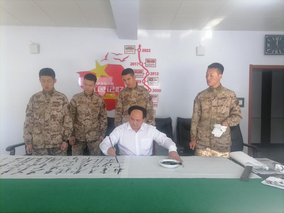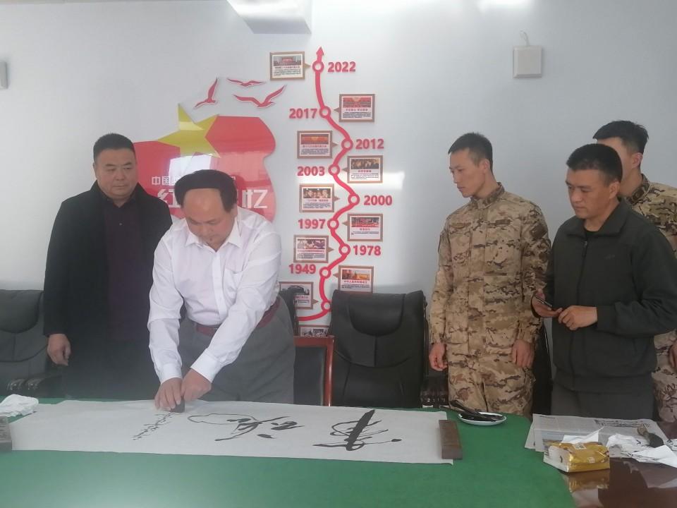 在此次活動中,特型扮演者趙士奎老師為承德支隊官兵題寫了充滿激情的詩詞《長征》及“軍魂”等書法作品,展現了其精湛的書法技藝和對傳統文化的深刻理解,贏得了官兵們的敬意。
