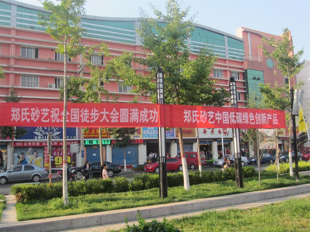 2014年9月5日,2014中國興隆霧靈山全國徒步大會在興隆縣城中心廣場舉行開幕儀式。國家體育總局領導、承德市韓副市長、市體育局局長、興隆縣委書記、紀委書記、縣長、人大主任、宣傳部長等領導出席開幕儀式。來自全國各地的200多名徒步愛好者和包括人民日報等20多家新聞媒體參加了開幕儀式。鄭氏砂藝作為徒步大會的指定產品,組織全體員工在廣場進行了產品展示和宣傳活動,懸掛橫幅5副,展示作品近百件,有力配合了徒步大會的舉行,也再一次提高了鄭氏砂藝的社會知名度。