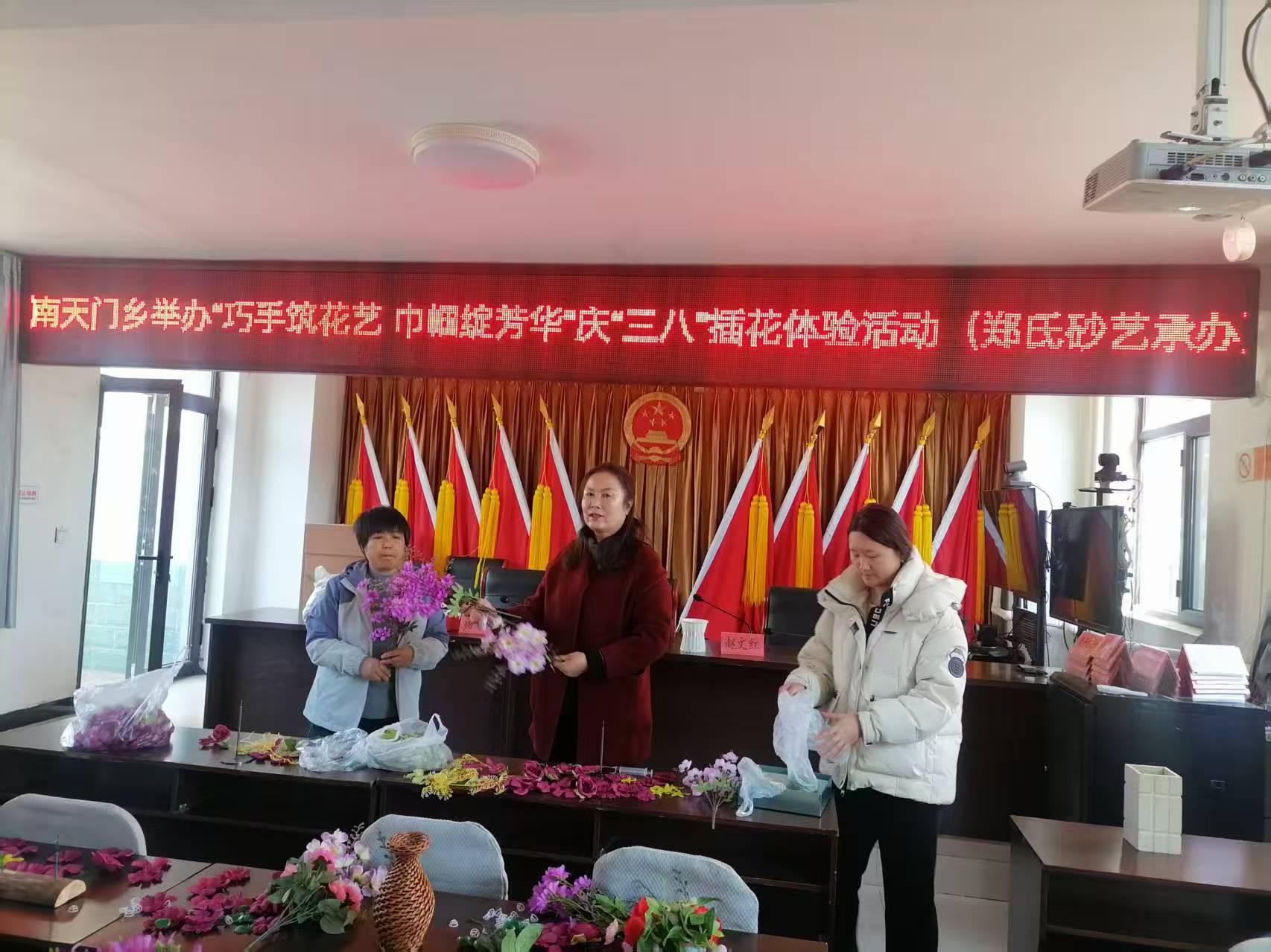 2025年3月6日,由南天門滿族鄉人民政府主辦,鄭氏砂藝承辦的“巧手筑花藝 巾幗綻芳華”慶“三八”插花體驗活動在南天門鄉政府圓滿結束,吸引了30余名南天門鄉農村女性的積極參與。此次活動通過絹花制作體驗,生動展示了傳統工藝在鄉村振興中的積極作用,為鄉村發展注入了新的活力。