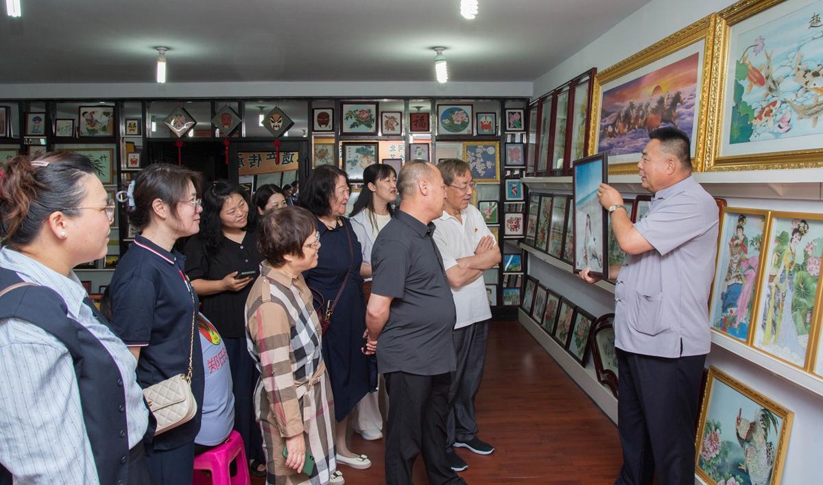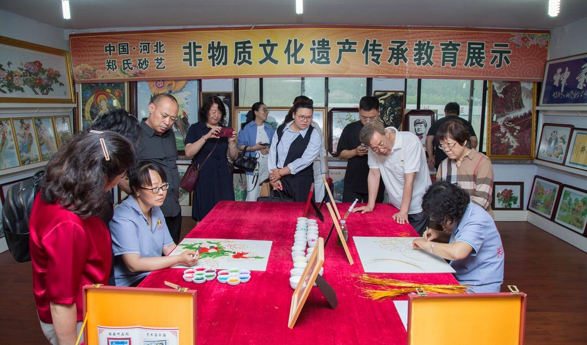 在鄭氏砂藝總經(jīng)理鄭鐵軍的引領(lǐng)下,參觀人員先后參觀了鄭氏砂藝非遺傳承基地和創(chuàng)新研發(fā)車間等工作場所,鄭總詳細(xì)介紹了公司發(fā)展歷程、非遺傳承成果及黨建引領(lǐng)經(jīng)驗,強(qiáng)調(diào)黨紀(jì)要求如何融入企業(yè)管理黨員參觀了公司展覽館,欣賞了各類砂畫作品,感受非遺魅力。